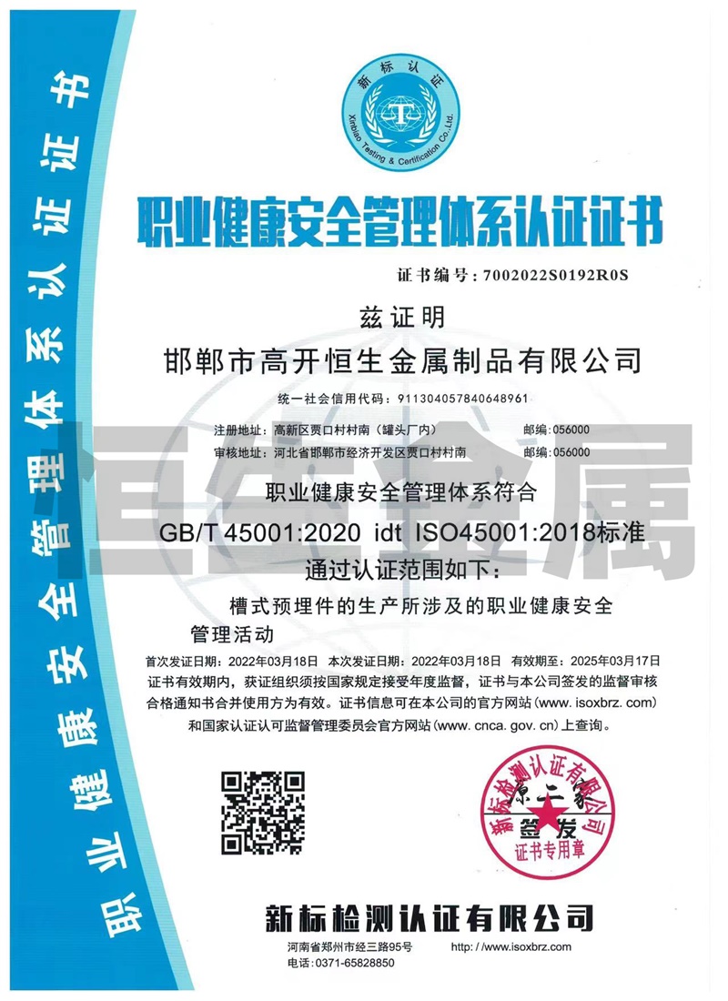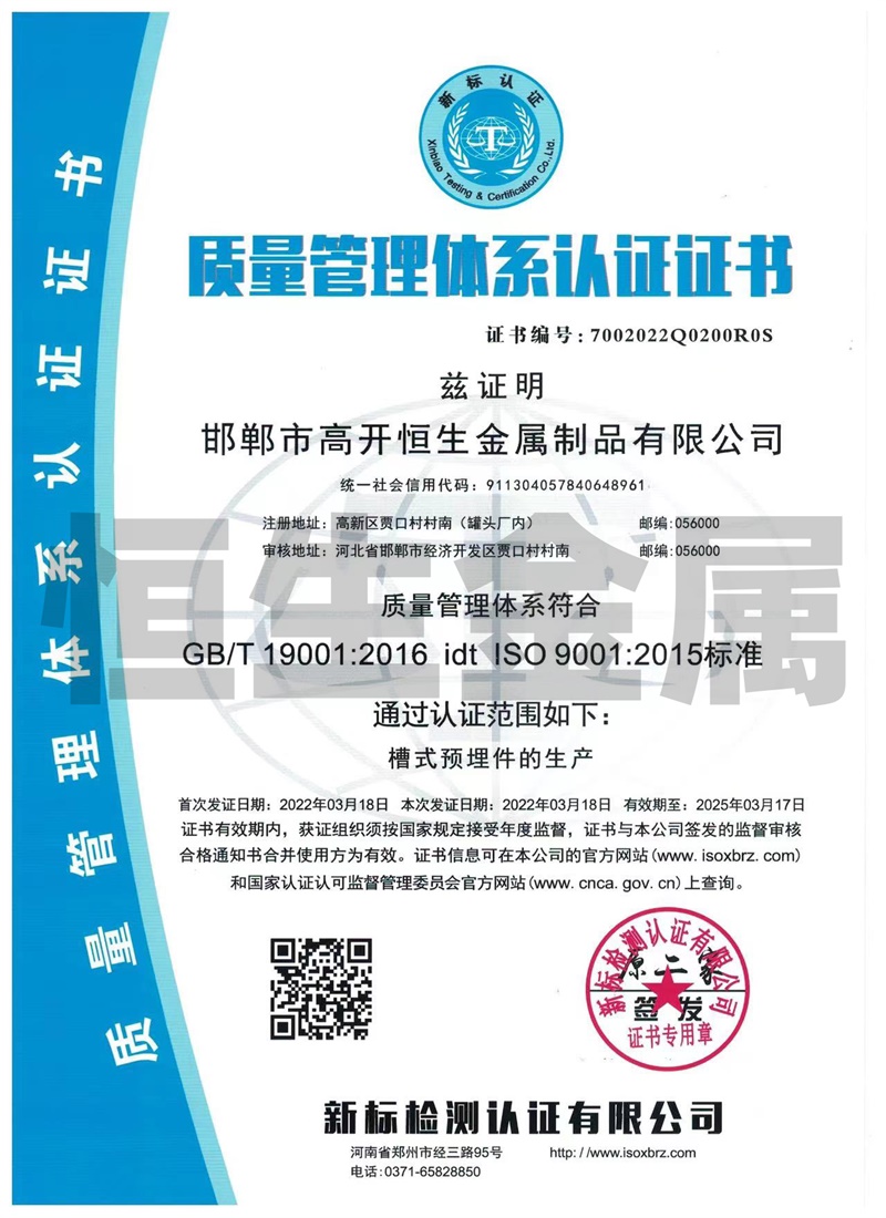邯鄲市高開恒生金屬制品有限公司總部設(shè)在鋼城河北邯鄲,西鄰京廣線、東臨京深高速,地理位置優(yōu)越,交通比較便利。 我廠擁有多年生產(chǎn)預(yù)埋槽道的產(chǎn)品生產(chǎn)經(jīng)驗,專業(yè)生產(chǎn)鍍鋅防腐槽型預(yù)埋件系列產(chǎn)品,其中產(chǎn)品包括:高開恒生哈芬槽、哈芬槽鋼、預(yù)埋槽道、預(yù)埋滑槽、帶齒預(yù)埋槽鋼、槽式預(yù)埋件、工字鋼材料、C型槽材料配套的T型螺栓,也可根據(jù)客戶需求按圖訂做加工,產(chǎn)品廣泛應(yīng)用于隧道、城市軌道交通、地下綜合管廊、建筑幕墻施工工程。